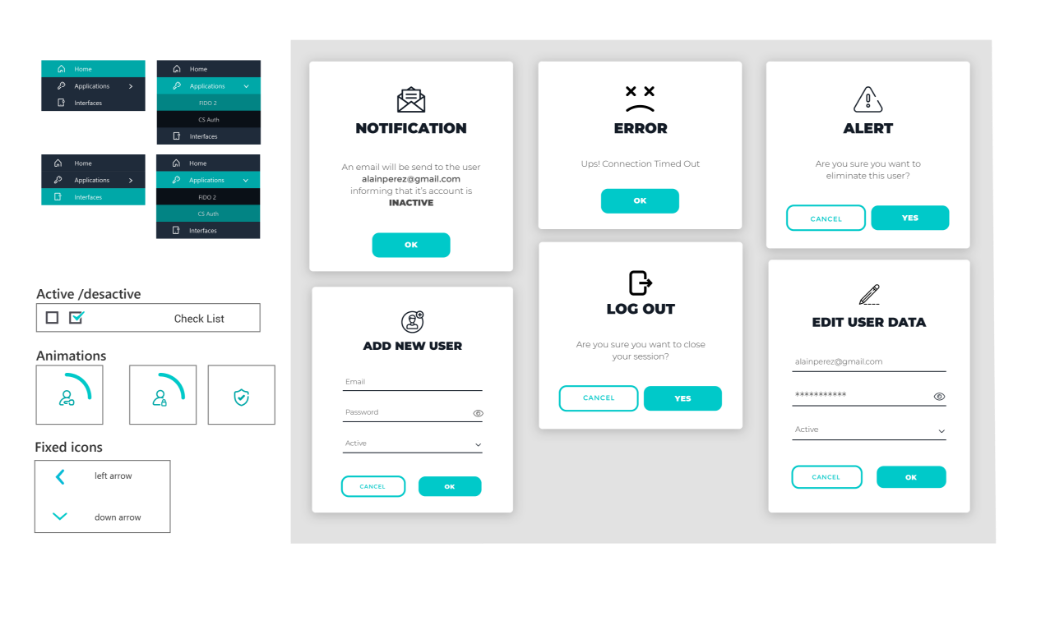 Los diseños que he creado para aplicaciones móviles destacan por su estética limpia y moderna, así como por su fuerte impacto visual. Desde iconos hasta sistemas de color, todo está pensado para una experiencia de usuario atractiva.